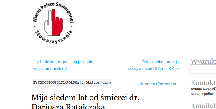 Mija siedem lat od śmierci dr. Dariusza Ratajczaka – Wierni Polsce Suwerennej
